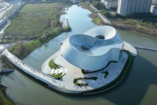 The abode sits among rocky and wooded scenery in Czech’s forest topography. It sits just a few meters from the edge of the forest and boasts an angular timber facade painted gray to match the tones of its surrounding granite and basalt rocks. New How Architects designed the chalet according to the seasonal changing local climates. The roof is at a steep angle to support snow load during the winter months.