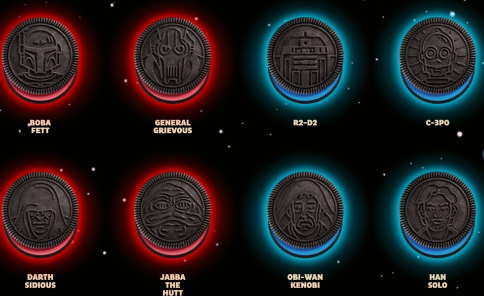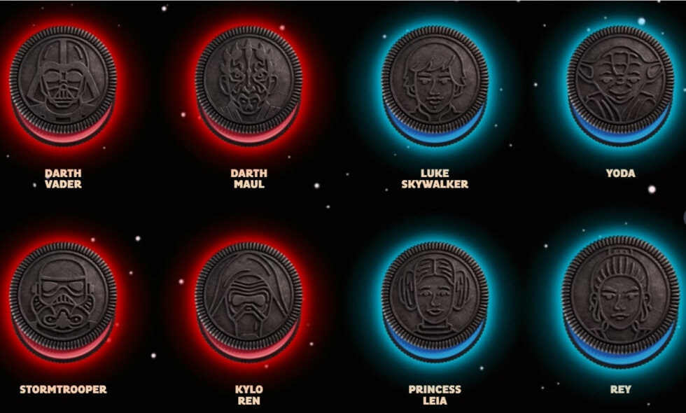 “You may know this as the Millennium Falcon. Correct? Correct. But now, it is incontrovertibly a cookie,” he says. Then on May 15, OREO finally unveiled its new “Star Wars” OREO cookies. The release comes in a variety of colors and designs. It appropriately comes with the tagline, “It’s time to discover your destiny,” as the usual white cream filling is replaced with either blue or red filling. Blue signifies the “Light Side” or the good side and red for the “Dark Side”.
