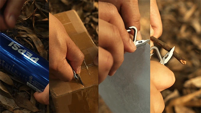 First up is the Damascus steel blade. Normally, this ancient steel is famously used in the blades or handles of pocket knives. But Hongkong based startup Orioners cleverly turned it into a 1.18-inch cutting tool. Despite its minuscule size, it is dangerously sharp. It can puncture soda cans, tear open stubborn packages, slice through paper, and sharpen a stick.