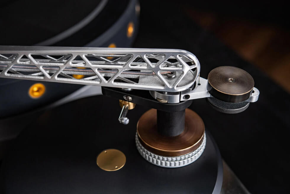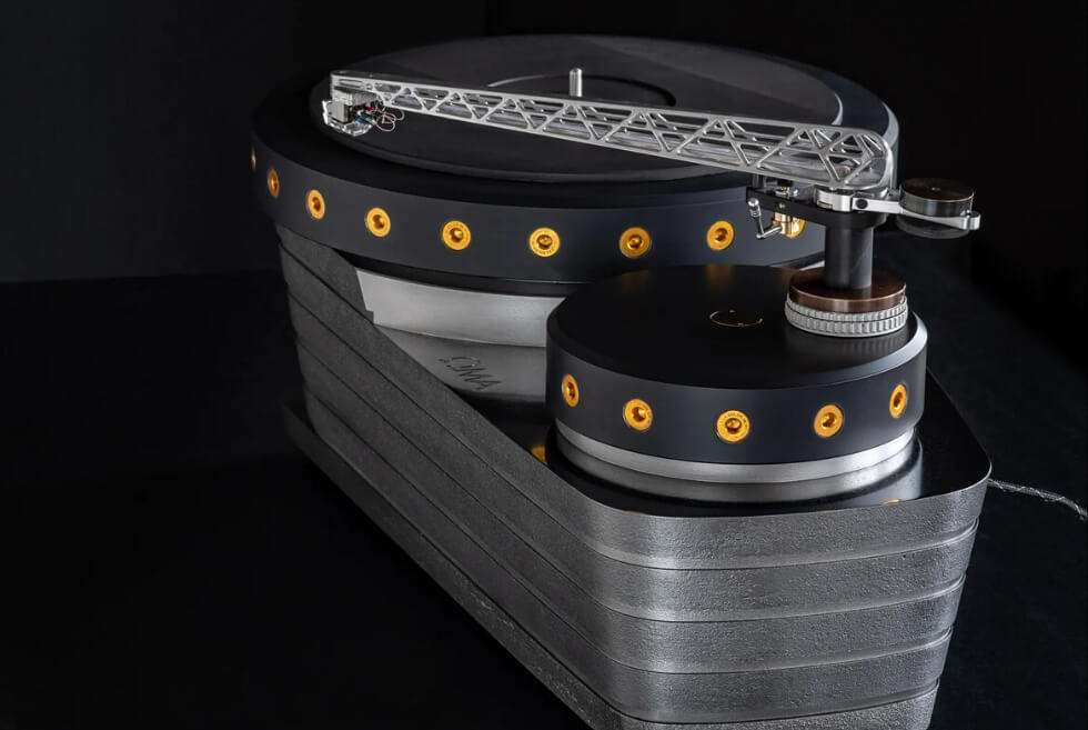 Credit goes to Frank Schroder for the use of a cutting edge SLM (Selective Laser Melting) technology to shape the aerospace-grade aluminum alloy into its intricate form. It also uses a heavy-duty direct drive motor system to spin the platter.