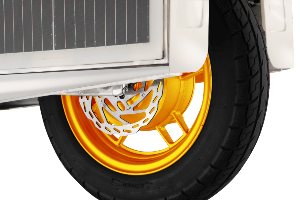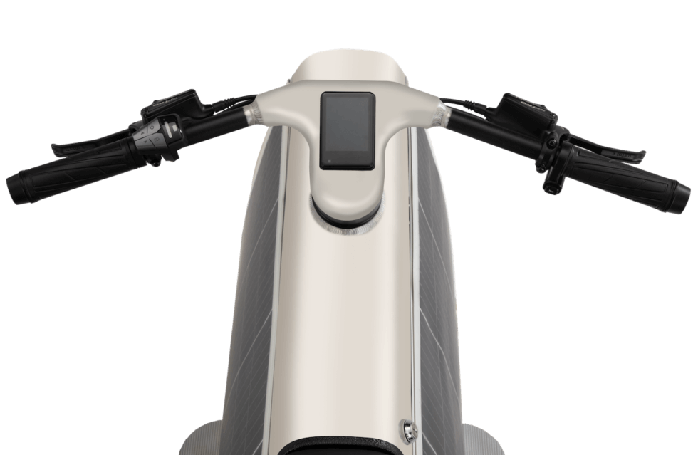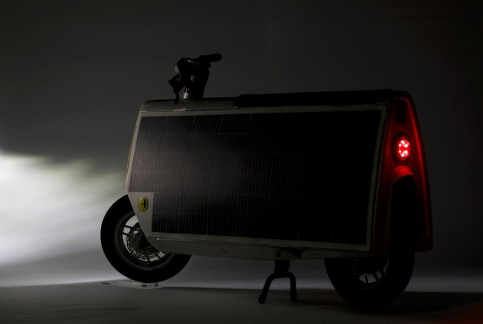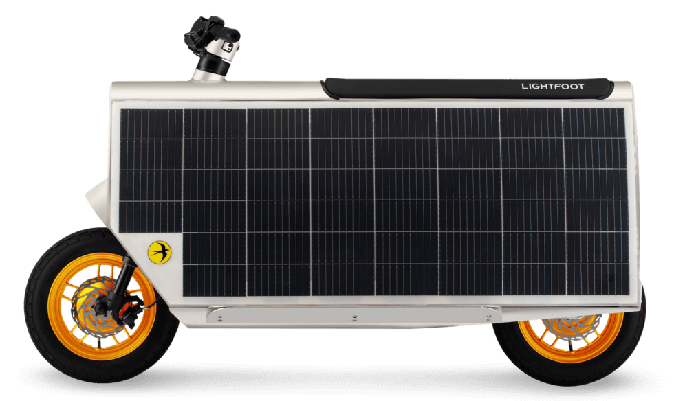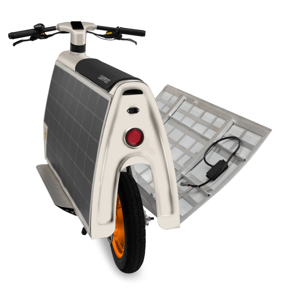 The clamshell-type compartment can reportedly fit grocery bags, a helmet, and a small suitcase, to name a few. Instead of regenerative braking, photovoltaic cells line the body of the Lightfoot. On a sunny day, the e-scooter can harvest solar energy to recharge its 48V 1.1 kWh battery.