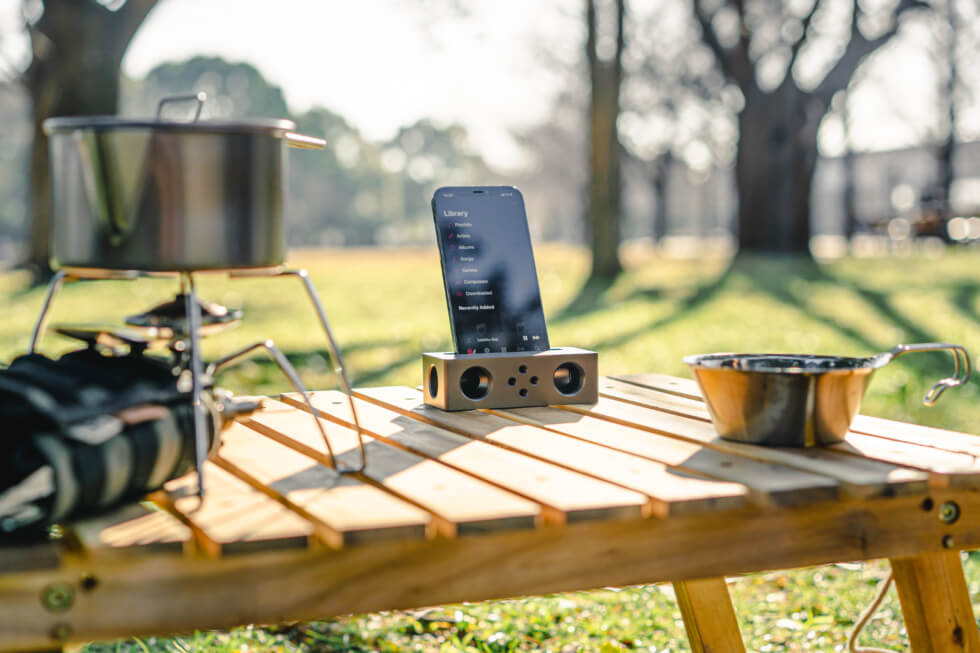 The Ototo speakers, produced with SHIMAWA Co., Ltd., a company that specializes in precision metalwork, are also safe to use. It has a polished and smooth finish that won’t scratch your phone or your fingers. It is available in Black, Silver, Red, and Charcoal Brown colors.