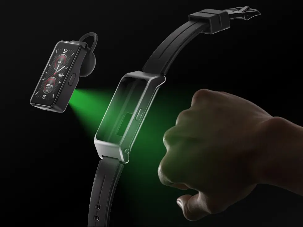 In fact, the official dimensions list it at beefy 177.3 mm x 82.4 mm x 23.2 mm. As hinted at earlier, the modular aspect of this smartphone comes from the detachable smartwatch/earbud and camping light. Unfortunately, it seems users need to choose which of the two to hook up to the WP300 at any given time.