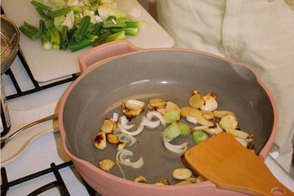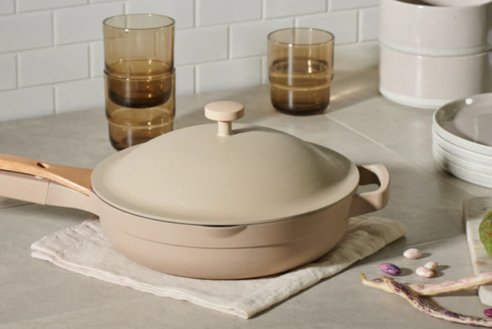 On the other hand, Our Place is crafting the Always Pan out of aluminum, which boasts exceptional thermal conductivity. It measures 10″ x 2.7″ with a 2.6-quart capacity and weighs only 3 lbs. The manufacturer is marketing it as a versatile replacement for your “fry pan, saute pan, steamer, skillet, saucier, saucepan, nonstick pan.”