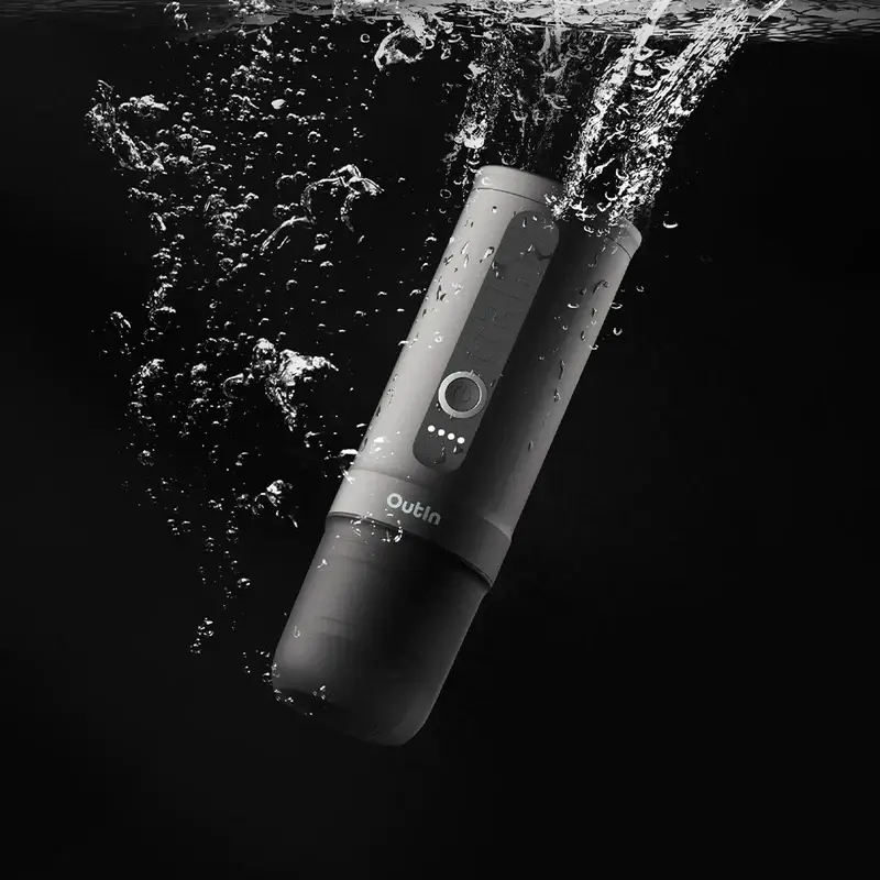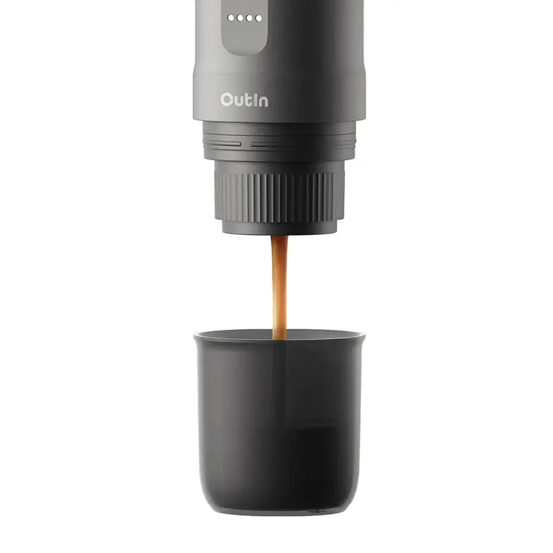 Likewise, the Outin Nano Portable Espresso Machine supports both ground coffee and capsule brewing methods. It comes in a vertical flask-shaped design that lets you pour water to the top and either a coffee pod or coffee grounds at the bottom. A single press on the button on the surface starts the brewing process with the pump extracting delicious and flavorful espresso right into the machine’s cap.