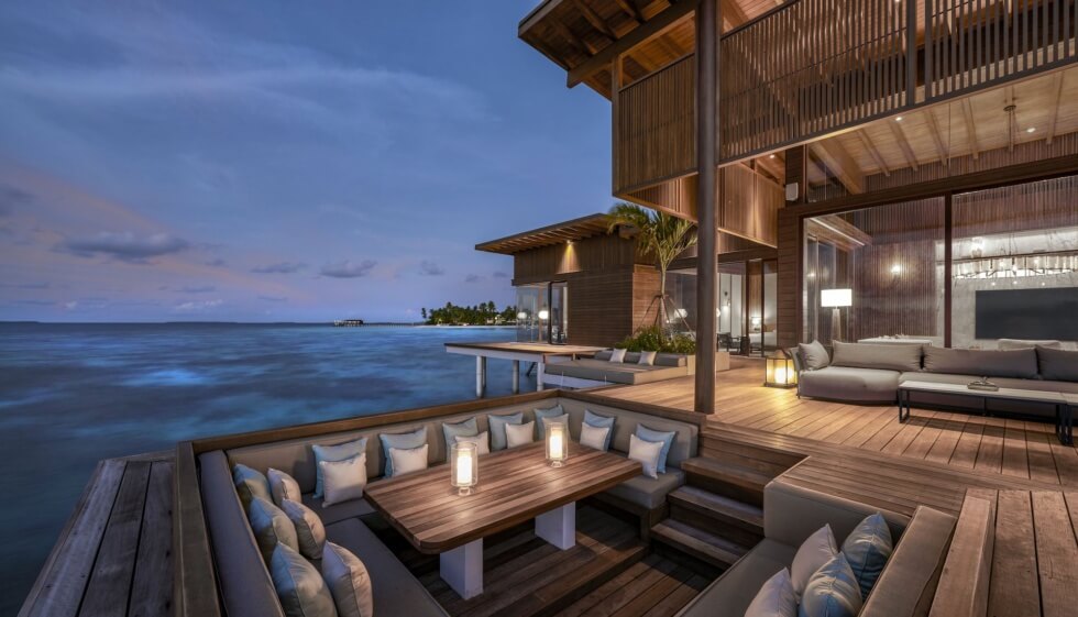 34 miles from the equator is the Huvadhoo Atoll – where the Overwater Reef Residence is accessible. Guests get to have 9,600 square feet of space all to themselves in this three-bedroom accommodation. Here, you have panoramic views of the Indian Ocean and its crystal clear waters.