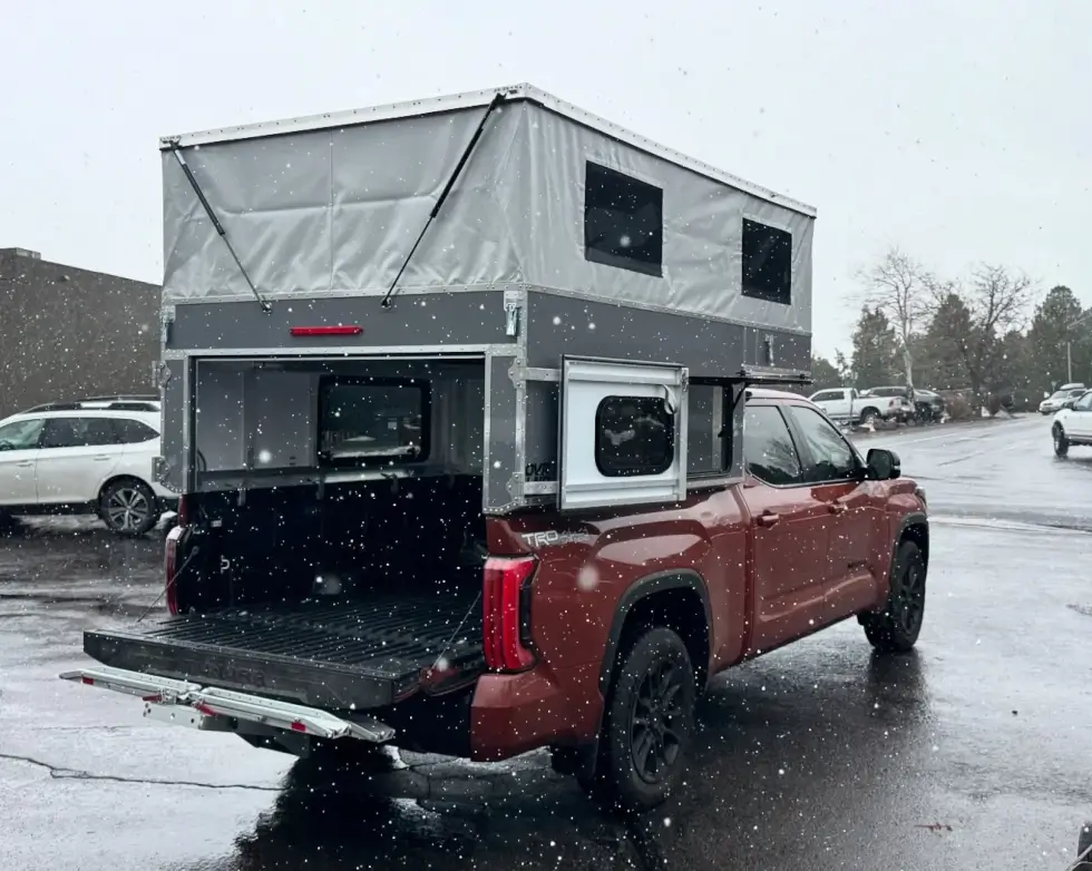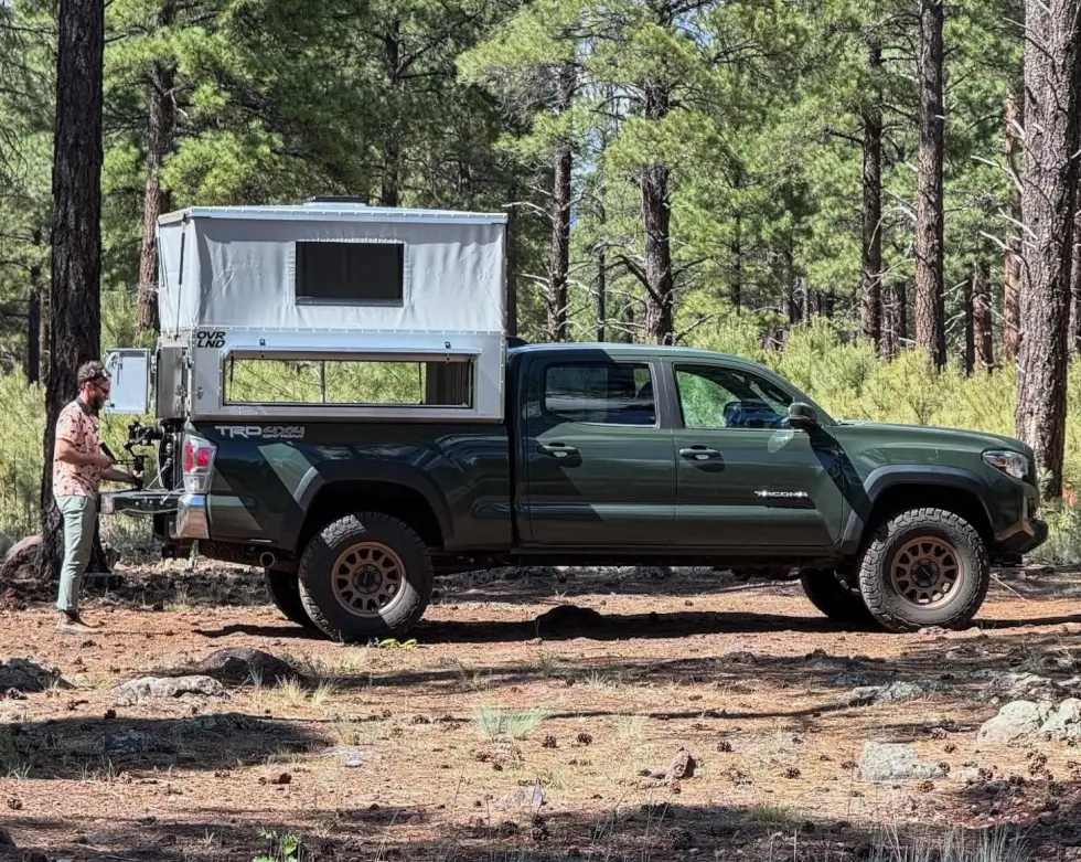 The Bivy comes from OVRLND Campers and is available for mid-size, full-size, and long-bed (8 feet) trucks. Depending on what the client needs, this SKU is ridiculously customizable. Even in its standard configuration, the system is easy enough to upgrade later on. Meanwhile, those who want it seven inches wider can opt to go Chubby.