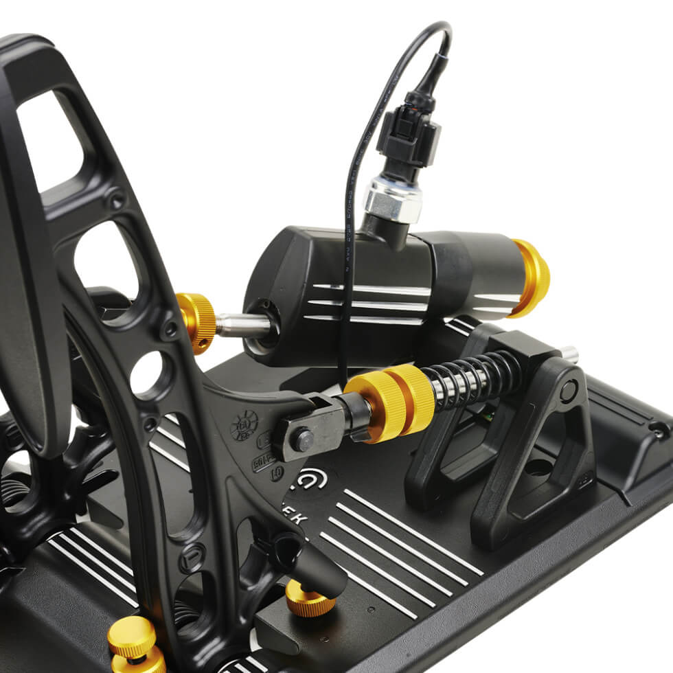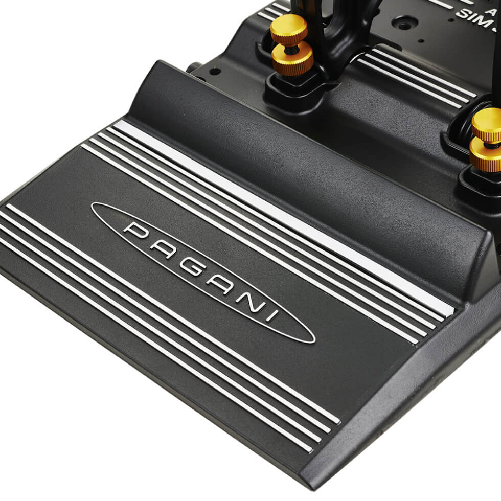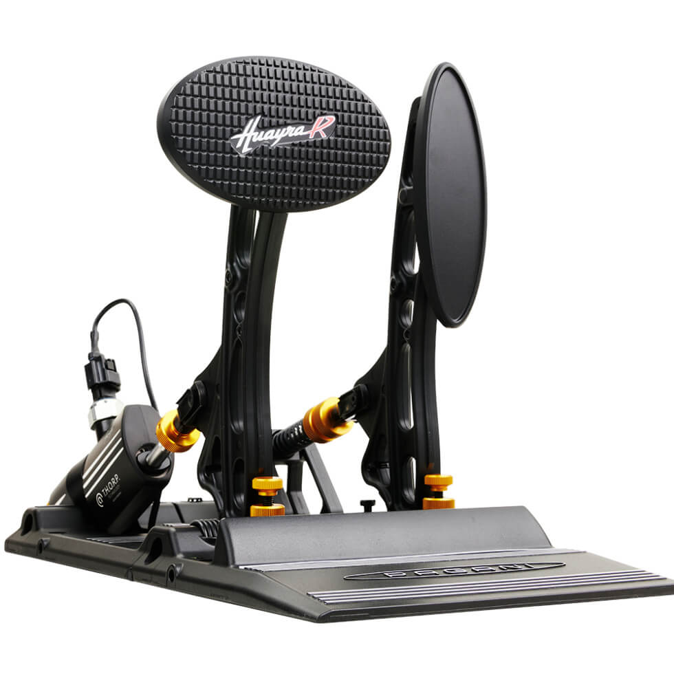 Moreover, it uses an elastomer that replicates the characteristics of the real-life pedals. This authenticity comes from the official partnership between Asetek SimSports and Pagani. The tech behind it is the THORP (Twin Hydraulic Opposing Rapid Pistons) brake unit. It allows two-stage vehicle braking with a short pedal actuation.