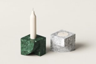 QUB Candlestick is carved from marble and granite and has two functional sides: one to hold a tapered candle and the other for a tealight.