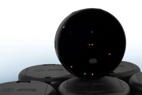Crowd Compass is a battery-operated tracker that shares messages and location between peers via a 915 MHz radio and mesh network technology.