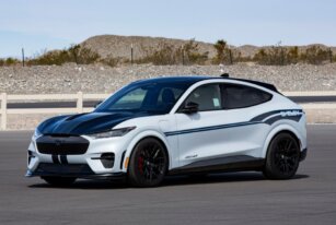 Among the tweaks Shelby American made to the Mustang Mach-E GT is a suspension adjustment, weight reduction, and excluisve livery.