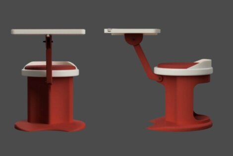 OmniSeat enhances productivity in public spaces with its stool-like frame integrated with an adjustable tabletop and retractable LED light.