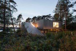 Saunders Architecture designs Villa Grieg as a residence that blends with the landscape via its understated façade and silhouette.