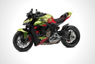 The Ducati Streetfighter V4 Lamborghini touts a base color of Verde Citrea with Arancio Dac for contrast and Huracán STO design elements,