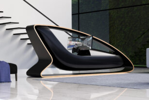 What looks like a stylish piece of luxury furniture is actually the Prodrive X Ian Callum racing simulator for gamers.