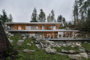 Woven Architecture and Design present a two-story vacation home nestled on rocky hillside it calls the Sakinaw Lake House