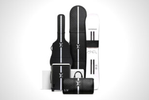 The Whitespace x Louis Vuitton Luggage Set includes a snowboard case, a guitar case, an iconic Keepall, a Horizon, and a snowboard hand-signed by Shaun White.