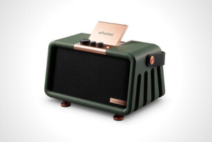 Nomvidic bills the X300 as a 2-in-1 smart portable speaker and projector in a sleek housing that looks like vintage analog electronics.