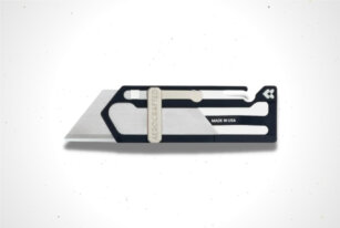 The Aerocrafted Sideslip Utility Knife comes in an aluminum and titanium skeletonized frame and uses a low-friction slider to deploy the disposable blade.