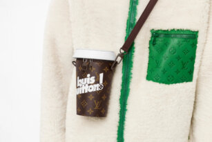 The Louis Vuitton Coffee Cup Pouch is a hip way to carry small items either by hand like an oversized coffee cup or as a sling bag.