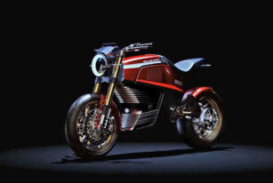 The Ducati 860-E Concept features contemporary upgrades such as LED lighting, upside-down forks, dual-rotor disc brakes, and a single-sided swingarm.