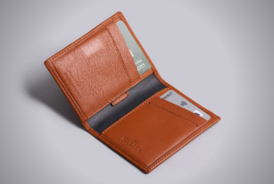 The WingWallex Minimalist Wallet holds nine cards and banknotes in a slim and lightweight bifold design that features a "wing" shield for easy card access.