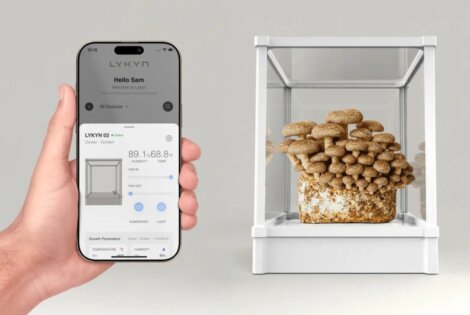 LYKYN automates mushroom cultivation usingg sensors and a dedicated app that controls humidity, fresh air exchange, and lighting cycles.