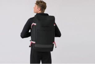 The Rapha RCC Weeklong Bag has a 60L capacity and a water-resistant interior. It has a fully reflective rear panel to keep you visible in the dark.