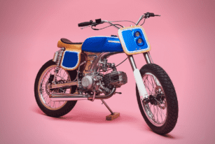 When artist George Woodman makes something, it’s always notable. He’s like Terrence Malick — makes few films, but each is an event. Like this Honda SS50.
