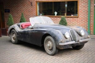 This one’s ripe and ready for restoration. Kept in dry storage since the 1970s, you can now get this beaten-down Jaguar XK120 from Woodham-Mortimer.