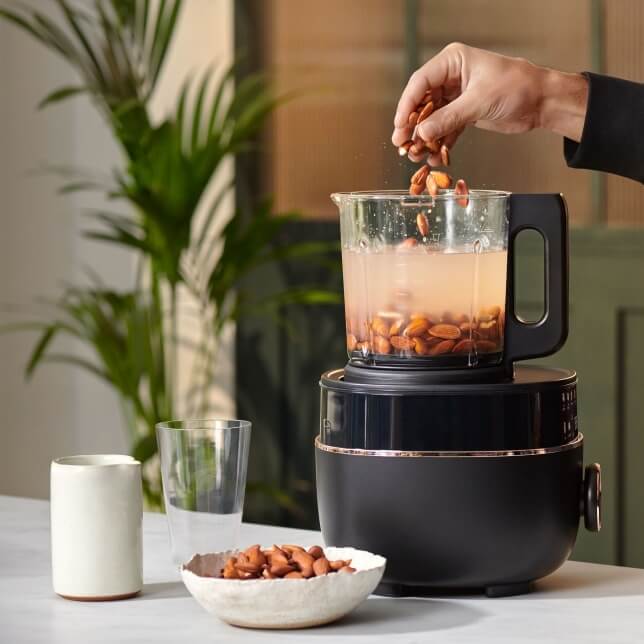 Panasonic’s Blender & Soup Maker MX-HG4401 operates quietly and offers 11 programmes, including smooth or chunky soup, smoothies, fruit purees, pasta sauce, nut milk, frozen drinks, jams, and even warm purees for babies. Moreover, it has 10 power levels to make smoothies, spreads, and more. A thoughtful addition is the Auto Clean function, which helps make cleanup easy. It swirls water around the blender to remove food scraps or other residue.
