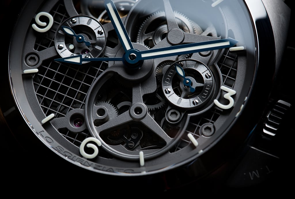 Part of the Lo Scienziato collection, which was inspired by and dedicated to Galileo Galilei, the Panerai Luminor 1950 Tourbillon GMT Titanio is a superb 47mm luxury timepiece. Manufactured for the first time in titanium, the watch is larger than other models in the line, yet its weight is still perfectly optimized for uncompromised comfort.