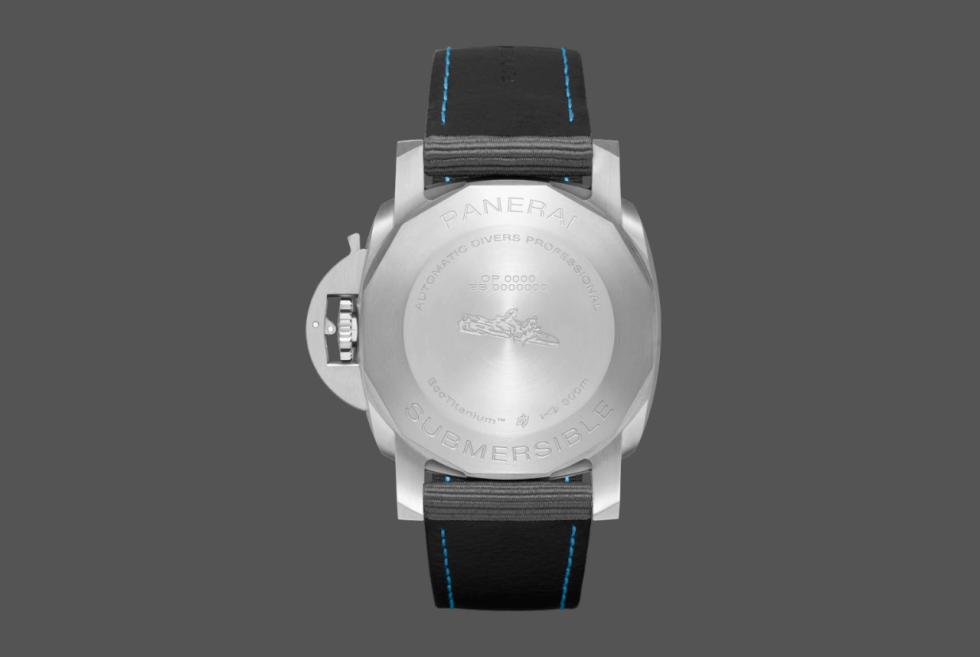 A while back, we introduced the Mike Horn Edition of the Submersible, which also used recycled components. This time around, the watchmaker claims the ELAB-ID is 98.6% by weight crafted out of it. For the 44 mm case, case back, bezel, buckle, and dial Panerai is using EcoTitanium. We’re guessing the same goes for the crown and crown guard.