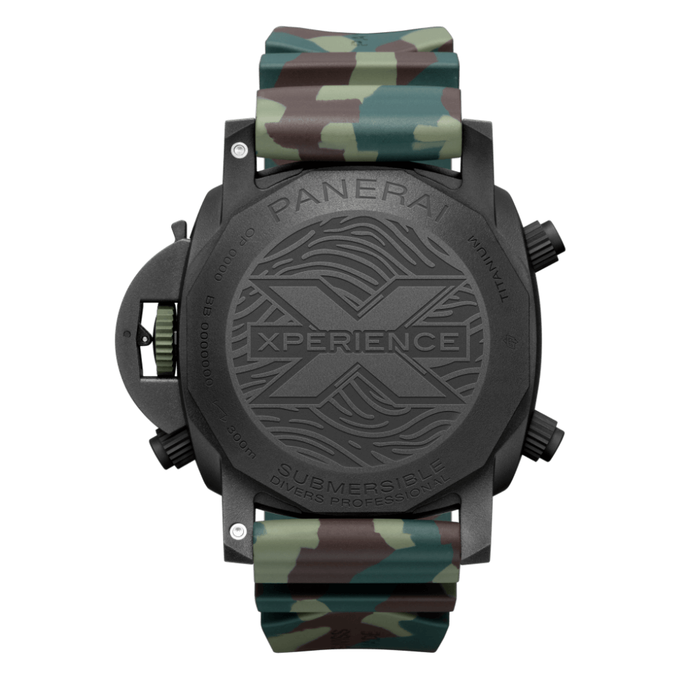 The hour markers, indices, and hands have a coat of lume for superior visibility in low-light conditions. Panerai ships both Submersible Forze Speciali watches with rubber straps. You can differentiate the “Experience” edition version by the green bezel insert, green crown, red markings and a camouflage strap.