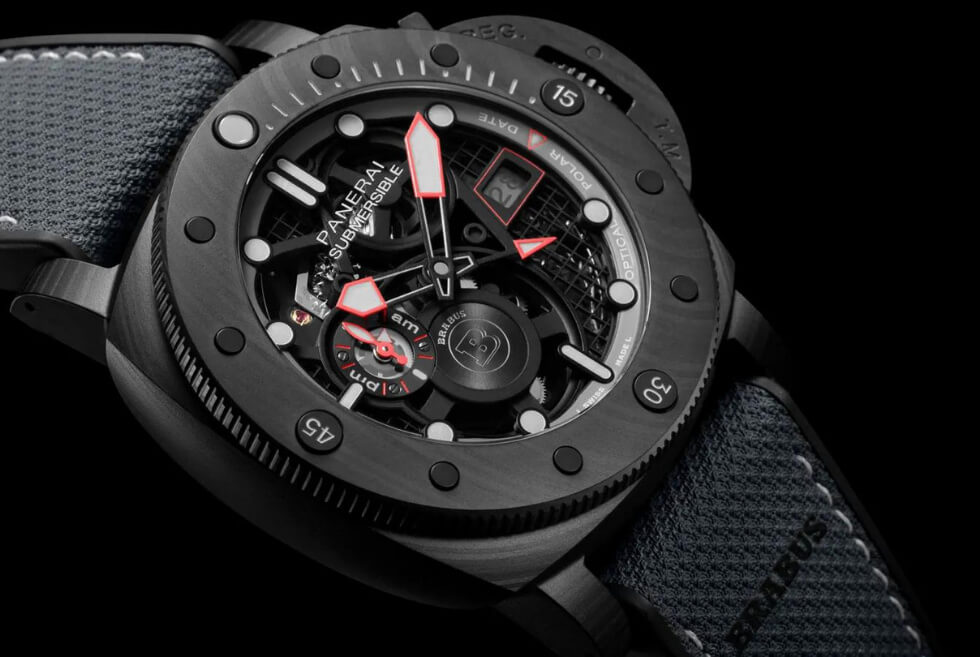 What gives the Panerai Submersible S Brabus Black Ops Edition a distinct aesthetic is the material of choice for its construction. Also, the watchmaker’s proprietary carbon fiber-based composite material – Carbotech is the highlight here. It endows the surfaces with an almost damascene pattern people will admire.