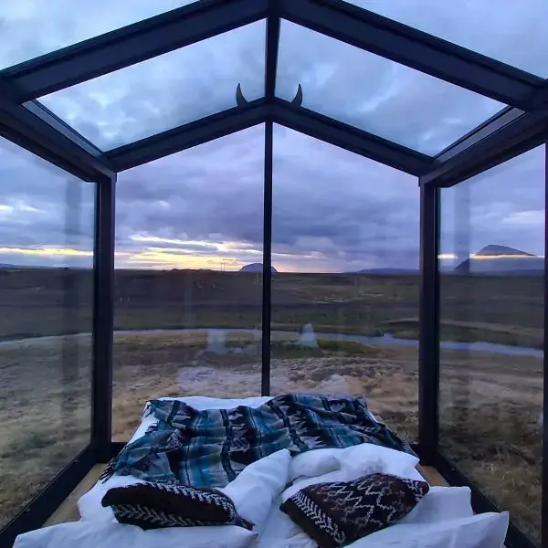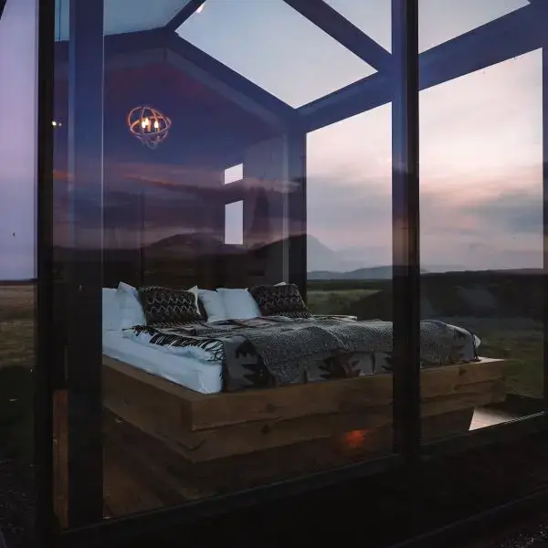 The Panorama Glass Lodge takes inspiration from the Viking period. The names of the lodges taken from Norse mythology characters. Yet they are styled in a modern setting and with a bit of luxury. The 248-square-foot floor cabins have custom-made king-sized beds. There is also a fully-equipped kitchen and an en-suite rainfall shower.