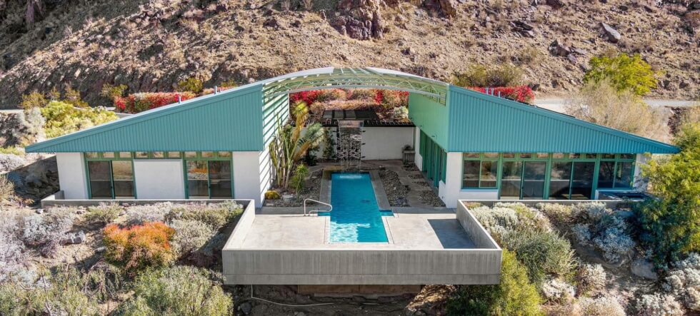 You can find this fancy dwelling in the Araby Cove neighborhood in the desert resort city of Palm Springs, California. Originally commissioned by George Norton, the architectural firm’s team completed the project in 1998. Now, Patrick Stewart Properties is listing it for approximately $3.2 million.