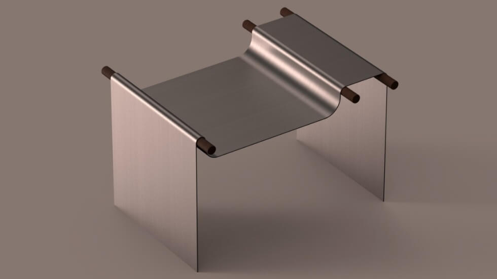 Then on either side, the metal sheet stands upright to serve as the supporting legs. But looking at it begs the question of durability and stability. Is it strong enough to hold weight? Essesi and Kim ensured the stool’s structural integrity and functionality by testing different steel thicknesses. This way, it can hold pressure and weight without sacrificing style.