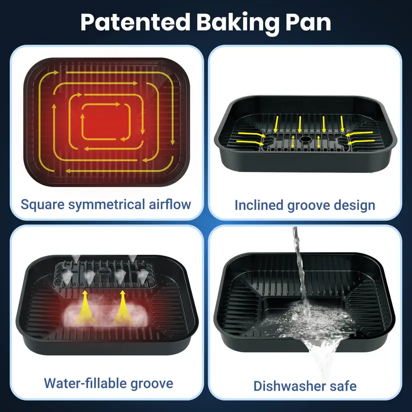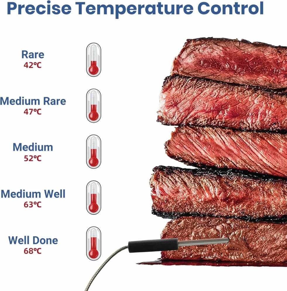 The temperature sensor probe offers precise temperature control that range from low-temperature fermentation to high-temperature baking up to 480°F. Moreover, the Parmedu Air Fryer Indoor Grill is user-friendly. It has programmable settings, a timer function, and an LED display, while all its accessories are easy to clean and dishwasher safe.