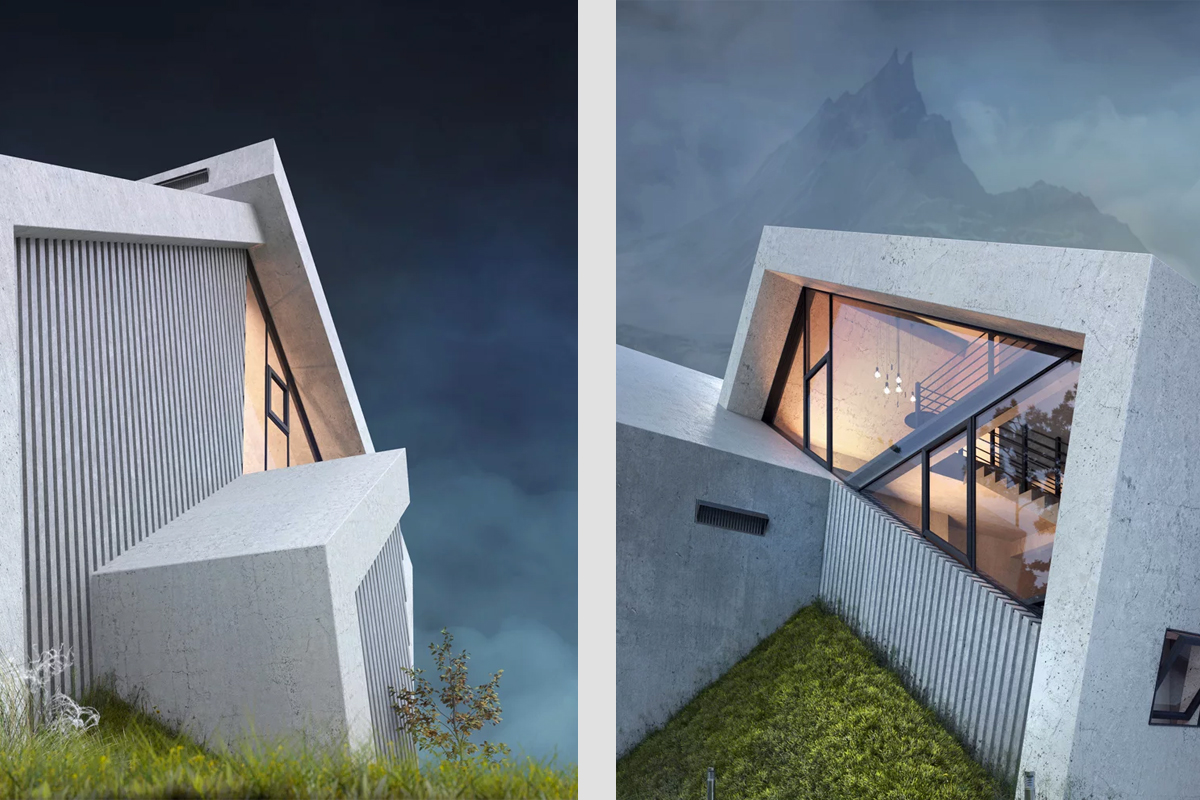 Architect Karina Wiciak’s Pentahouse draws inspiration from the mountain range, quite literally. Employing pentagonal geometry in the design, Wiciak created a minimalist abode featuring sloped concrete walls, recalling cliff sides and mountain peaks.