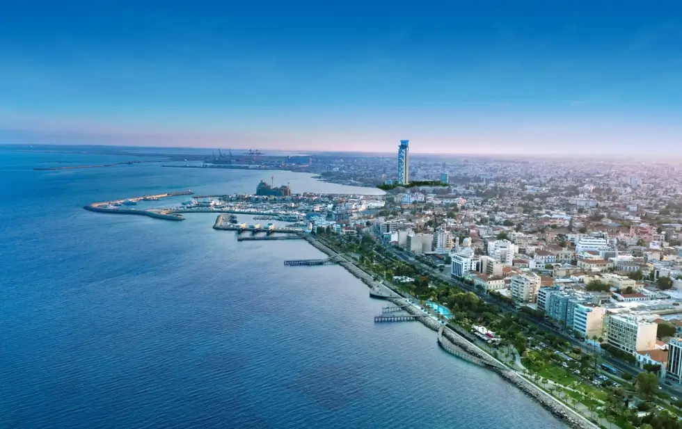 As it says right there, this upmarket abode places you at the top of the Poseidon Tower at Limassol. Located on the southern coast of Cyrpus, Greece, the waterfront development affords residents a magnificent view of the Mediterranean Sea and surrounding landscapes. Penthouse Number 3301 occupies floor number 33 and 43.