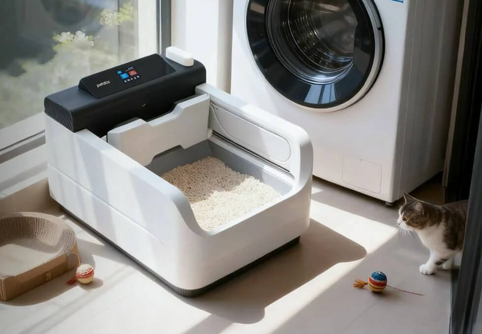 The Petalas Cat Litter Box uses washable and recyclable round, soft litter pellets made from a blend of PP and biodegradable materials. The pellets are ingestible and dust-free. A single bag of litter lasts for several months, making it both eco-friendly and cost-effective.
