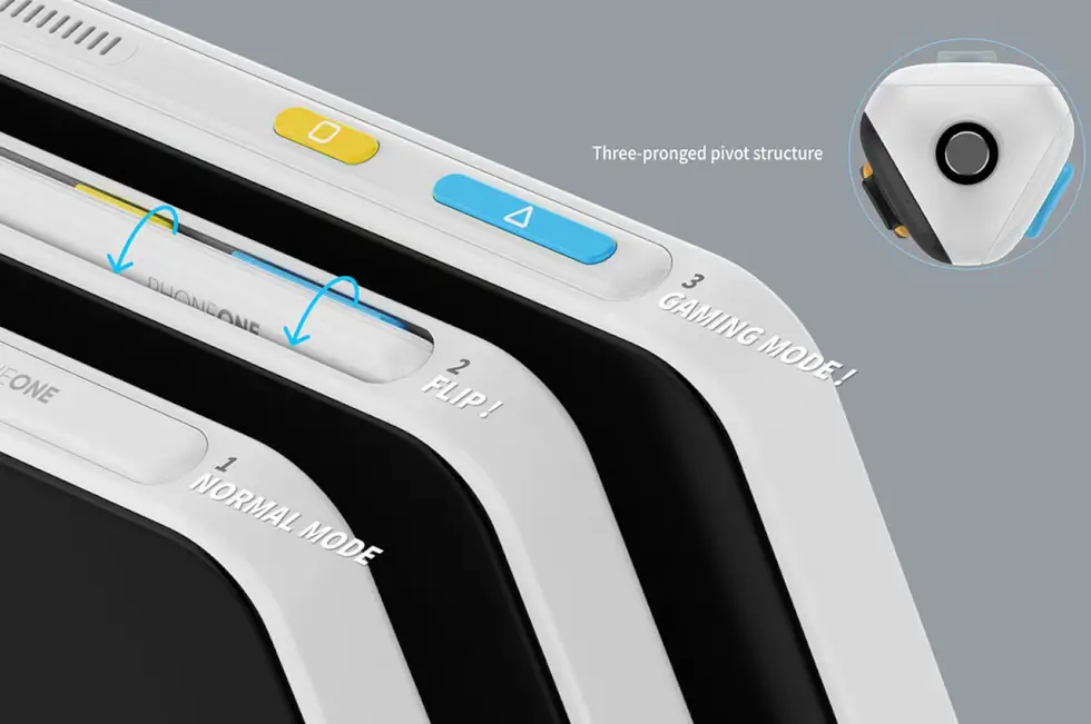 At first, Lu’s renders of the device just show us a basic candybar form factor with a flat display and a single main camera sensor on the rear. However, an interesting secret this bad boy brings to the table is the rotating three-sided panel on the right flank of the frame. It was not specified if the module is motorized or manually engaged, but it’s clear that each is geared for a specific usage scenario.