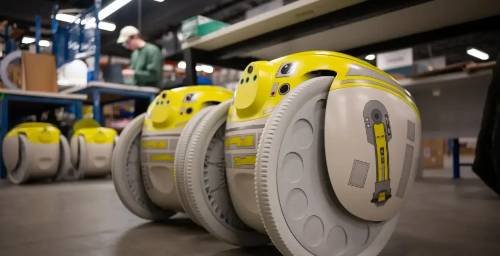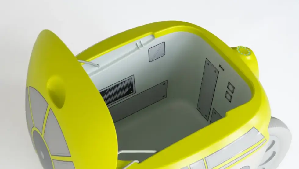 We love the clever tweak to the name, as it’s basically a special version of the Gita Mini. Instead of the standard tonal colorways, this SKU flaunts cool decorative graphics that resemble the R2 series of astromech droids. For those wondering, this machine is an automated replacement for smaller cargo/shopping trolleys.