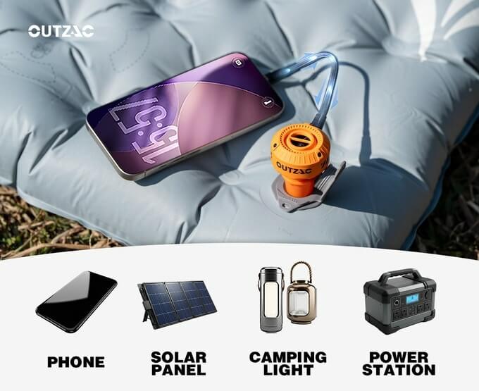 By doing away with the built-in battery feature, Pico Pump offers long-term use, optimizes energy efficiency, and minimizes unnecessary power consumption. Instead, it offers flexible power options: compatible with a phone battery, power bank, power station, camping light, a solar panel, or any 5V source.
