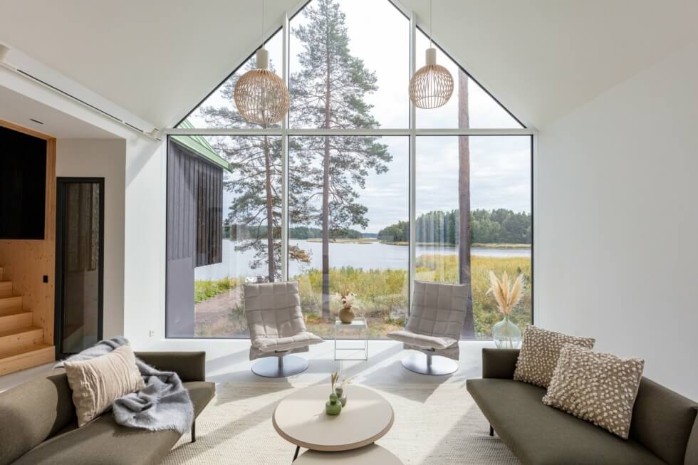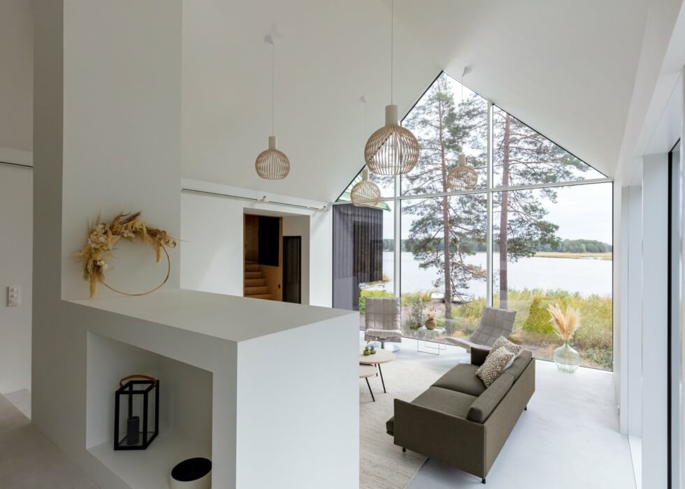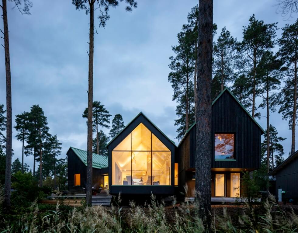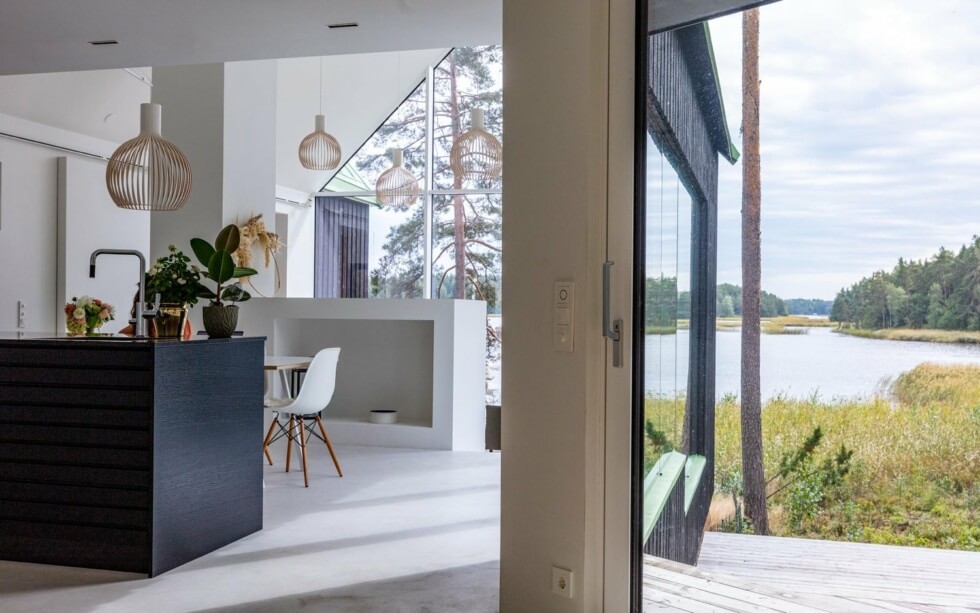 Nestled among pine trees on a seashore in southern Finland, the Dogs & Doctor’s House by Pirinen & Salo hides a beautiful secret. Looking at it from the street side view, it looks like three separate volumes. But the house completely opens to the sea and the surrounding wooded terrain from the other side.