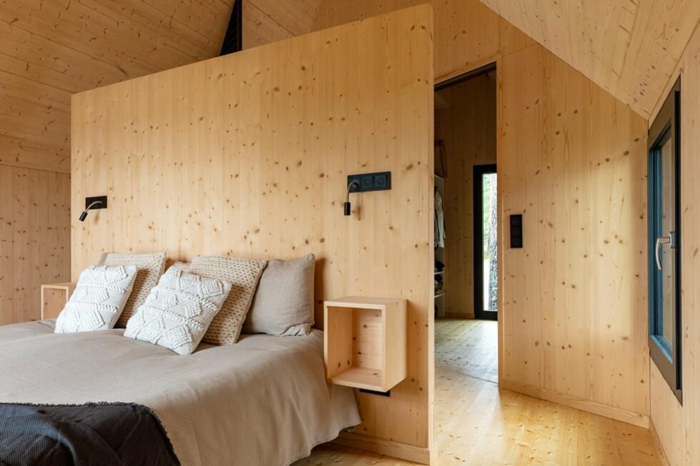 Meanwhile, the Dogs & Doctor’s House adopts a unique interior design. The architects said the “scale of the room and its fixed furniture give a subtle shrinking feeling, the space grows, the view gets closer, it’s as if you would be under a nature’s microscope.” It hosts a master bedroom accessible via a split-level staircase found in the living room. Beneath the master bedroom is the dressing room and a cement cave that houses the main bath and a sauna. This is a residential property named as such because the homeowners are doctors who own a few dogs.