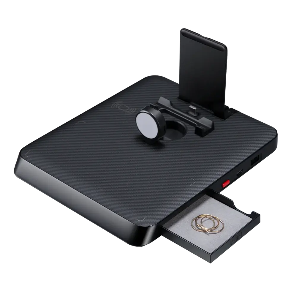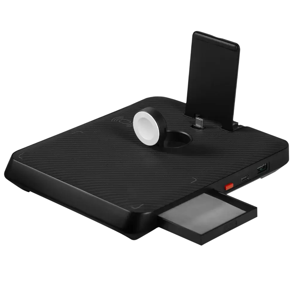 Pitaka’s Air Omni is perfect for those looking for a multi-purpose charging station. It’s a 6-in-1 dock that is compatible with both Android and Apple products and even has other functions on the side to make it a versatile bedside or desk tool.