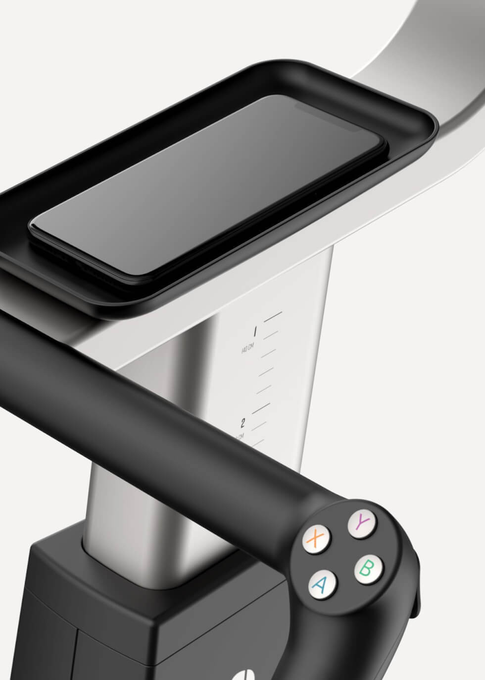Players control the game via the integrated controllers on the handlebars. For additional immersive experiences, the pedal sensors boast millimeter precision, while the player also gets to feel haptic feedback relative to the on-screen action. It even includes a magnetic bottle holder and phone tray. Both are removable. Most of the games that ship with the Playpulse ONE have players pedal and use the buttons to interact.