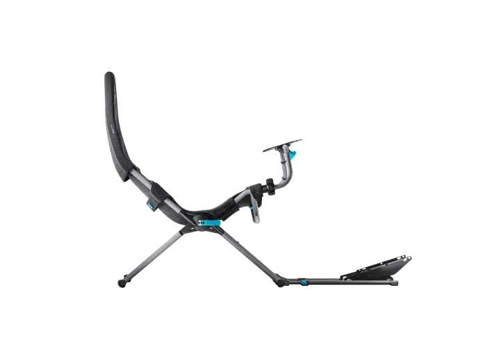 The Playseat Challenge X Logitech G Edition lines the front with Actifit Fabric and the rear with leatherette. This combination provides optimal breathability. We like the easy-access open cockpit mechanism which allows the tube that holds the steering wheel to swivel via a hinge to the side. This facilitates a quick entry and exit.